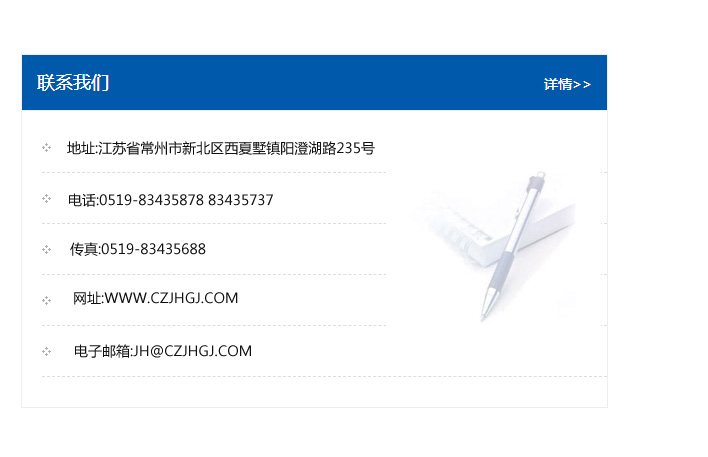 地址:常州市新北區友邦商務大廈1幢16、17層  電話:0519-85101652  傳真:0519-85112595  郵編:213022  網址:www.cz-jiayue_cn.vns2010.com  郵箱:xiajifengaa@163.com